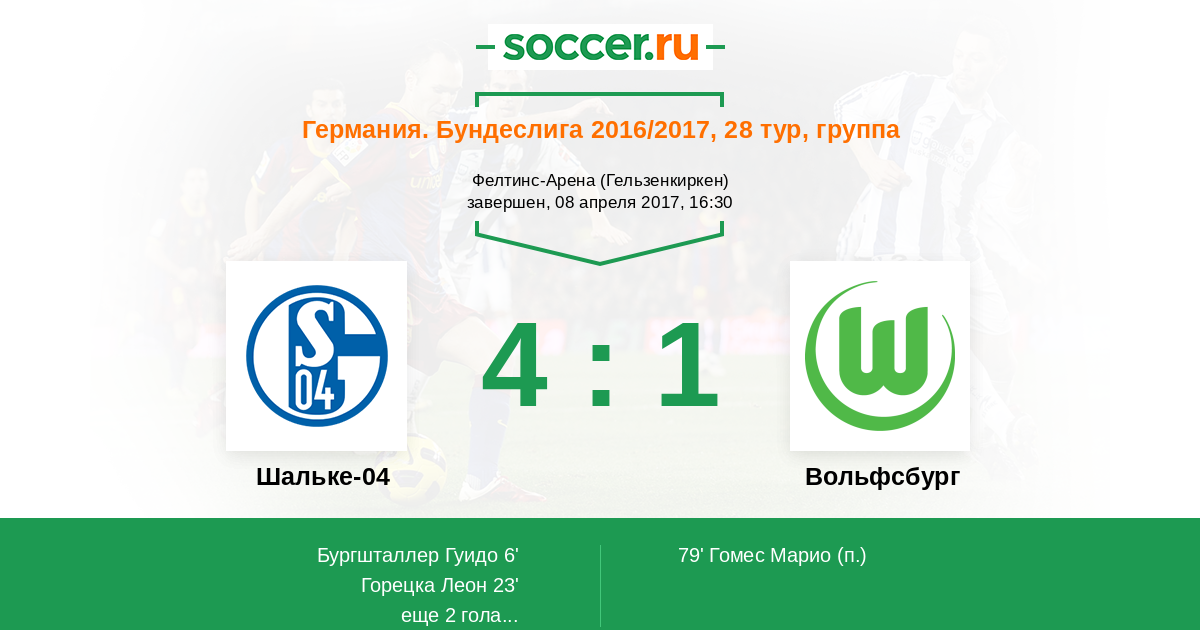 Шальке-04 - Вольфсбург: обзор матча 8 апреля 2017