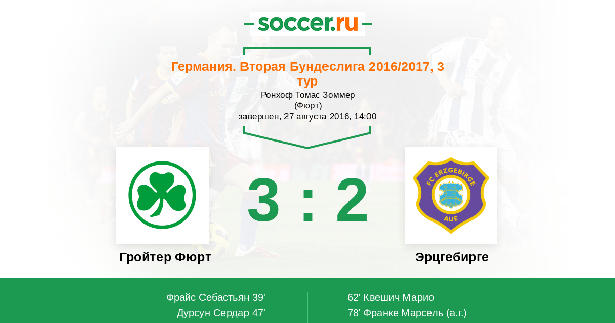Гройтер Фюрт - Эрцгебирге: обзор матча 27 августа 2016