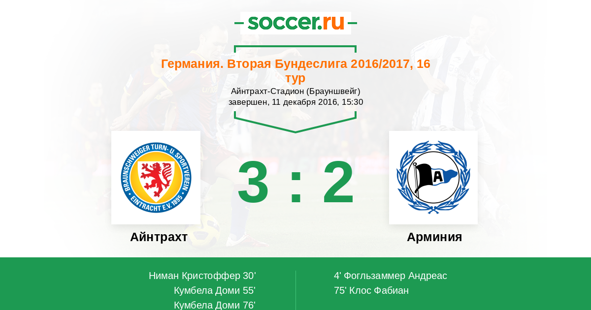 Айнтрахт - Арминия: обзор матча 11 декабря 2016