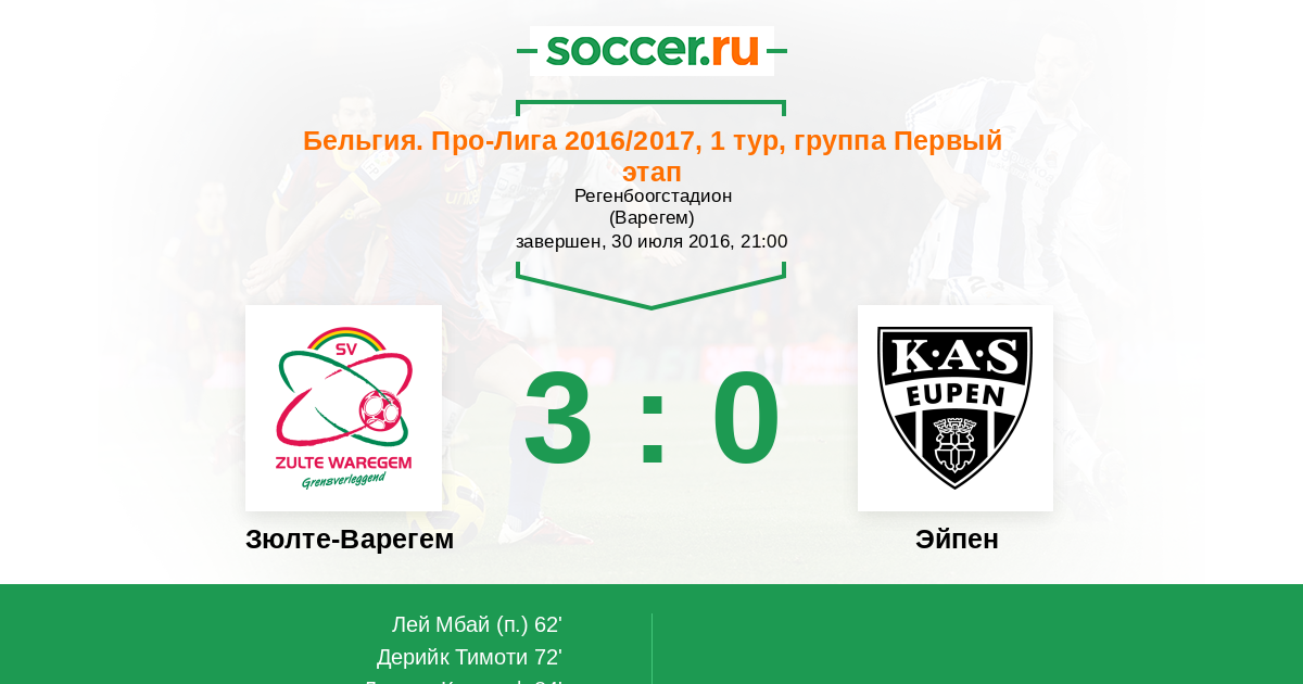 Зюлте-Варегем - Эйпен: обзор матча 30 июля 2016