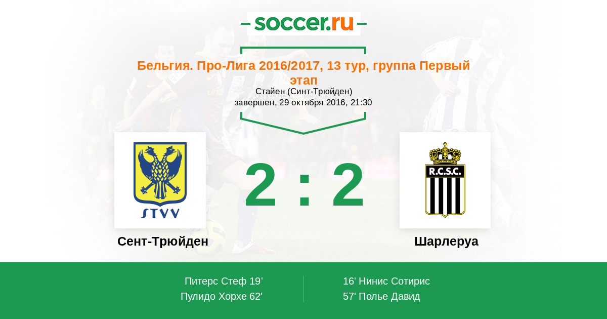 Сент-Трюйден - Шарлеруа: обзор матча 29 октября 2016