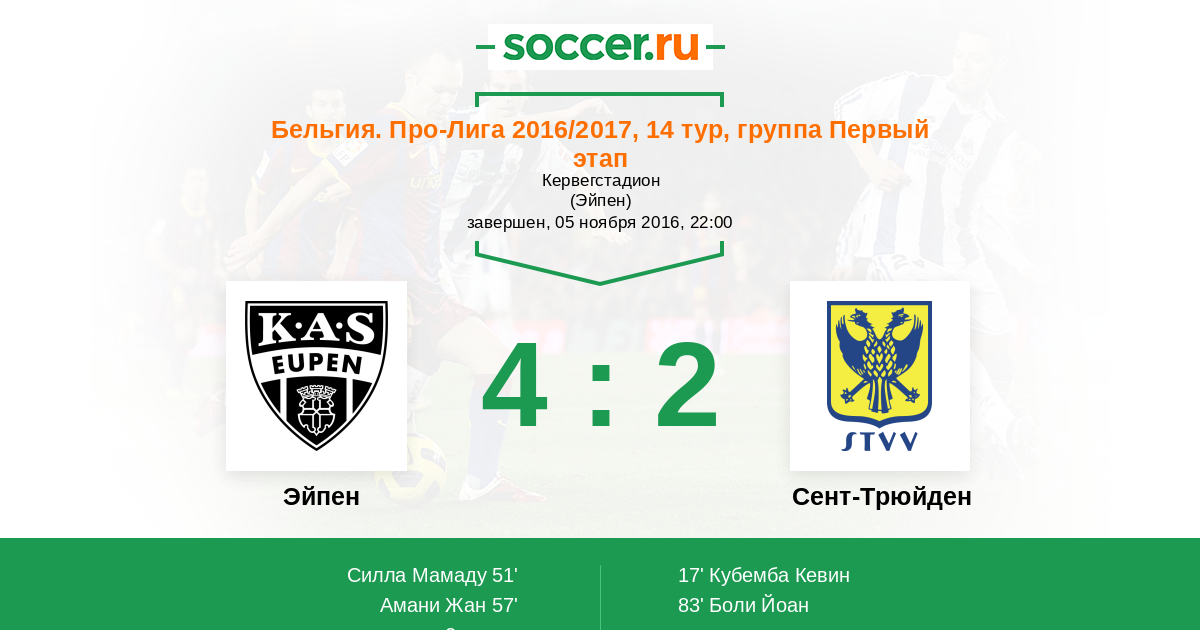 Эйпен - Сент-Трюйден: обзор матча 5 ноября 2016