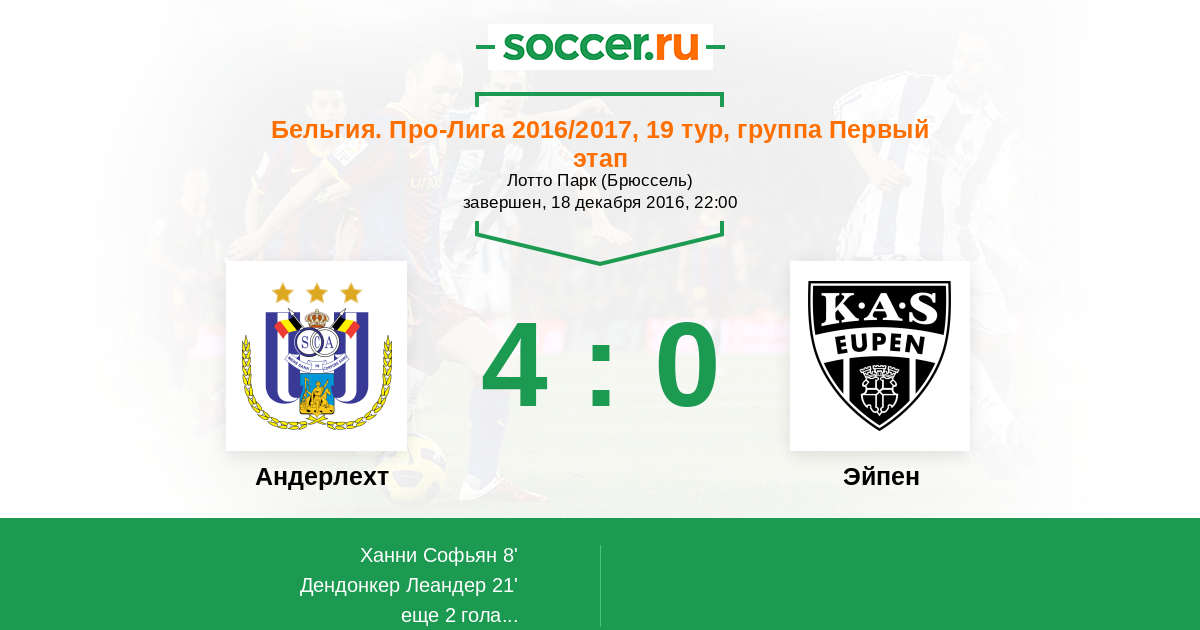 Андерлехт - Эйпен: обзор матча 18 декабря 2016