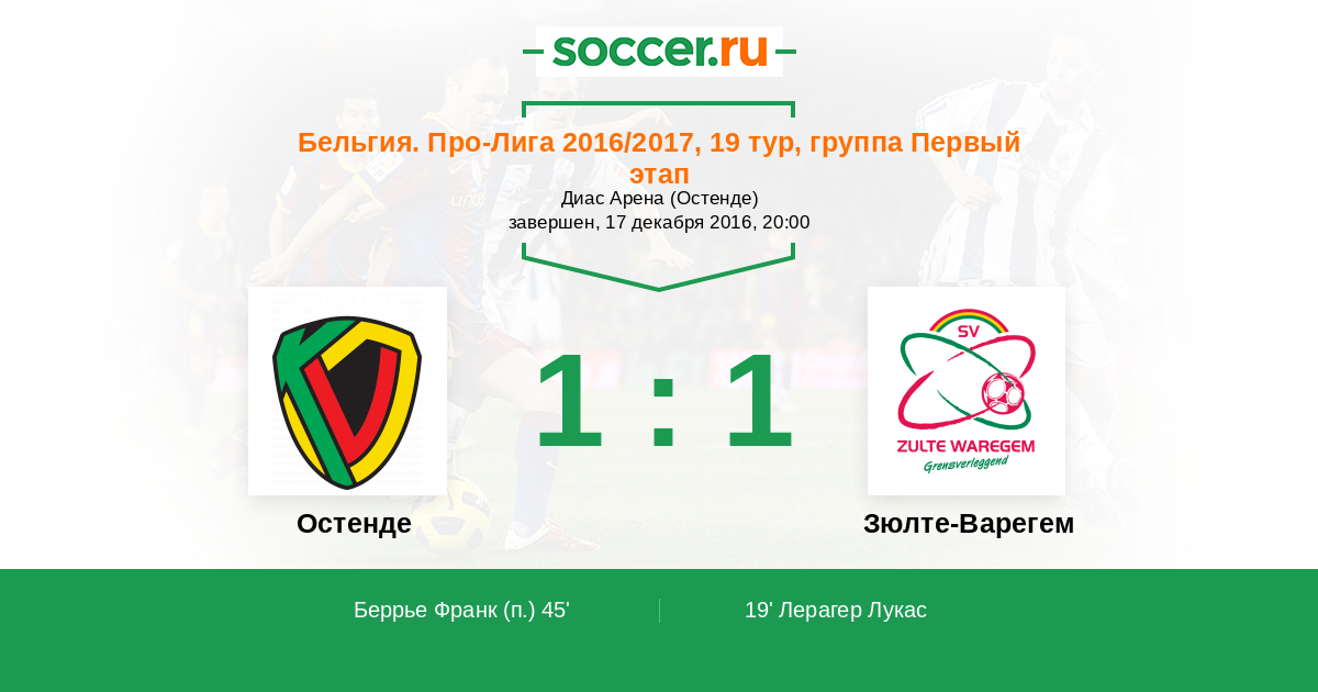 Остенде - Зюлте-Варегем: обзор матча 17 декабря 2016