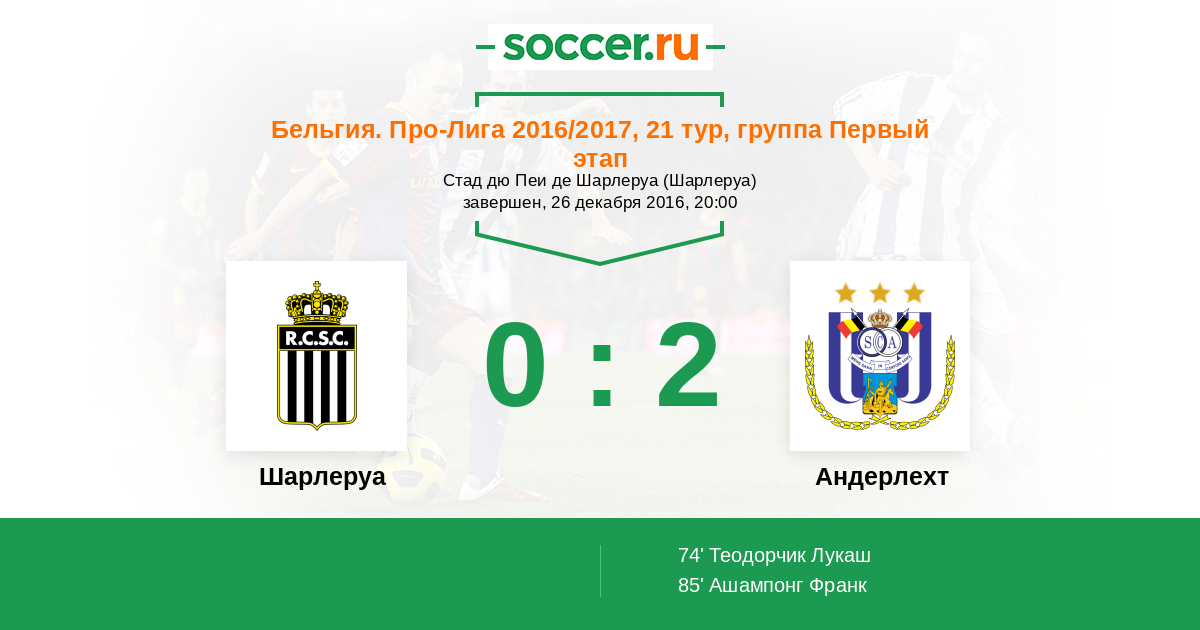 Шарлеруа - Андерлехт: обзор матча 26 декабря 2016