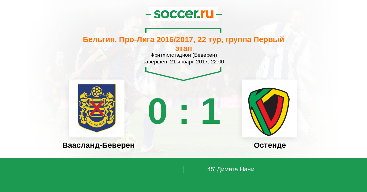 Ваасланд-Беверен - Остенде: обзор матча 21 января 2017