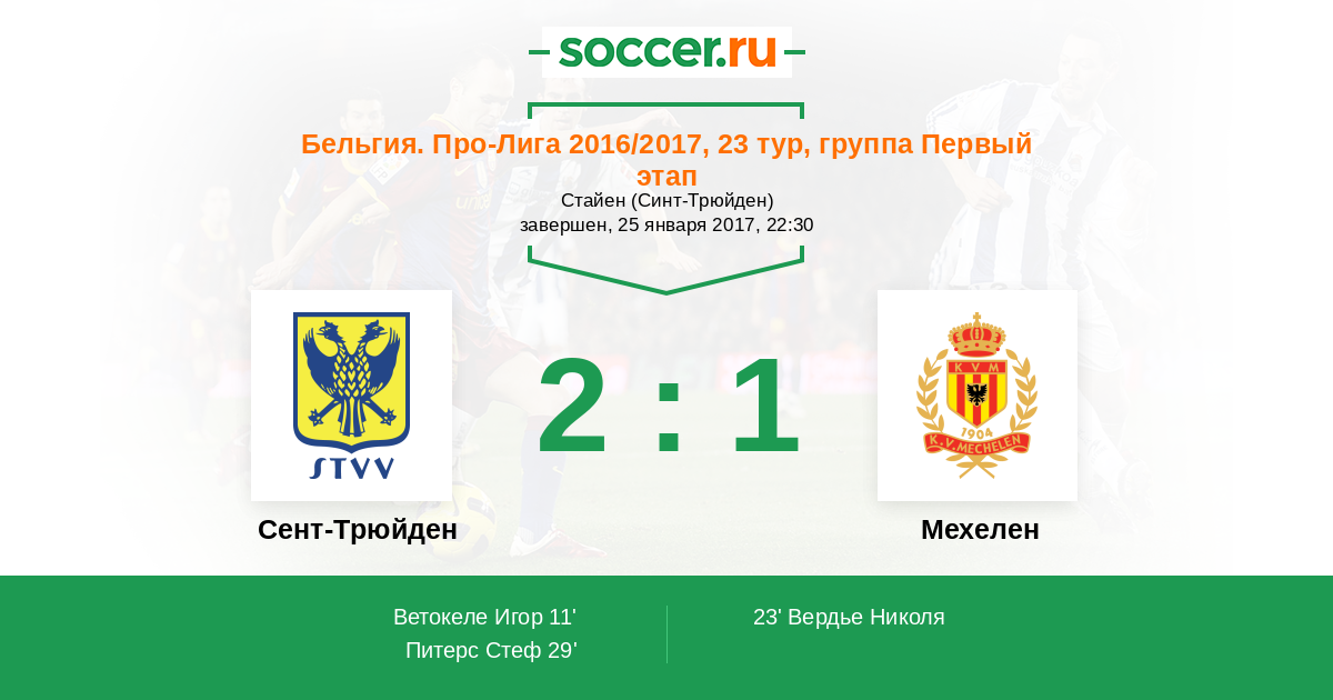Сент-Трюйден - Мехелен: обзор матча 25 января 2017