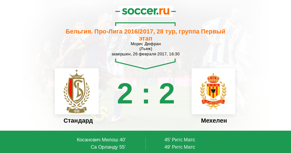 Стандард - Мехелен: обзор матча 26 февраля 2017