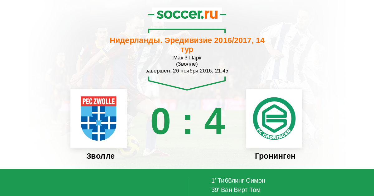 Зволле - Гронинген: обзор матча 26 ноября 2016