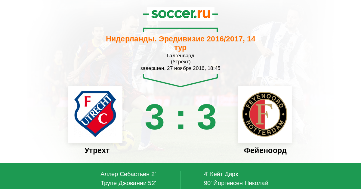 Утрехт - Фейеноорд: обзор матча 27 ноября 2016