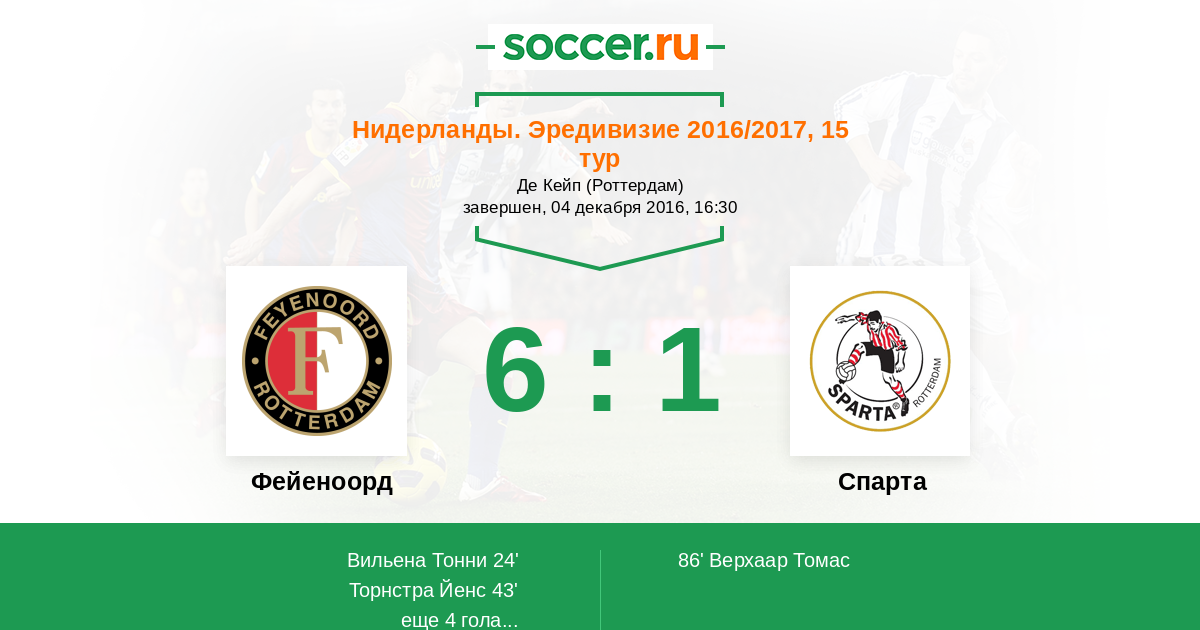 Фейеноорд - Спарта: обзор матча 4 декабря 2016