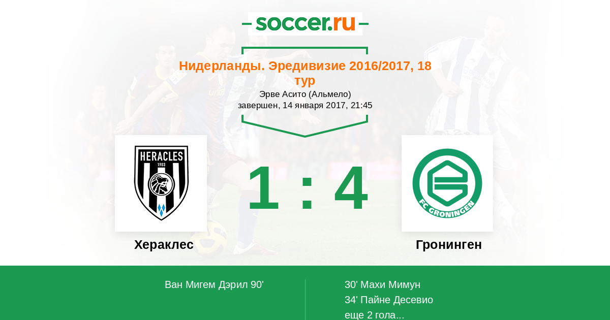 Хераклес - Гронинген: обзор матча 14 января 2017