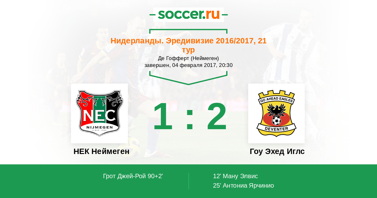 НЕК Неймеген - Гоу Эхед Иглс: обзор матча 4 февраля 2017