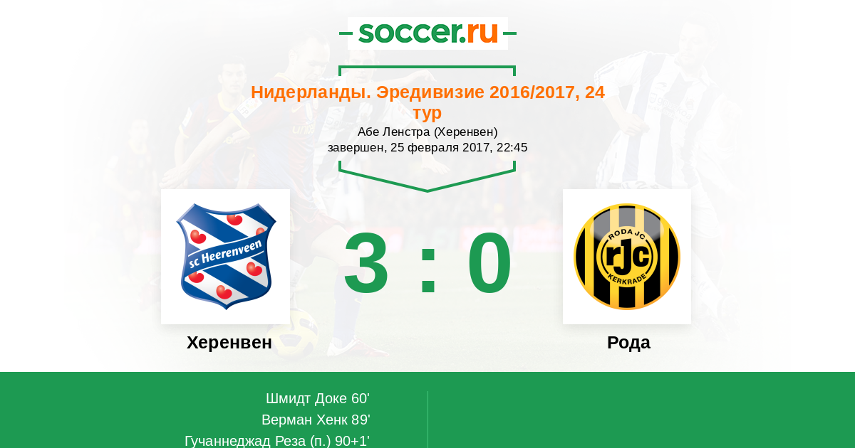 Херенвен - Рода: обзор матча 25 февраля 2017