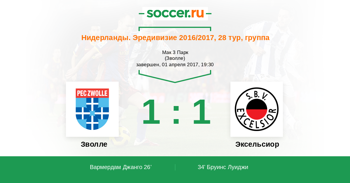 Зволле - Эксельсиор: обзор матча 1 апреля 2017