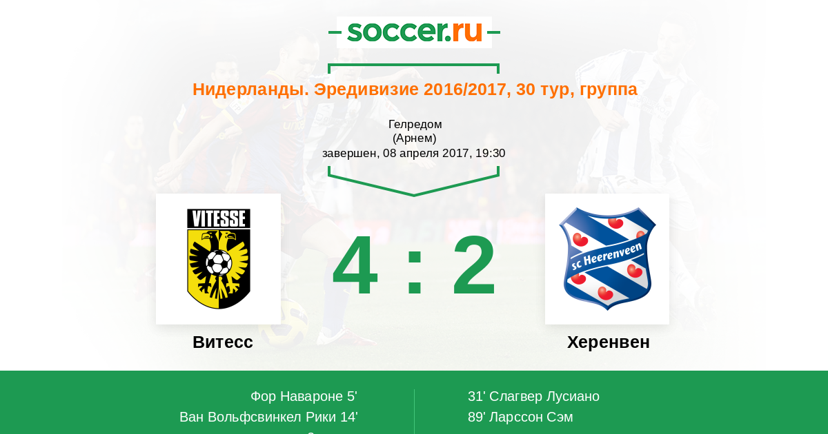 Витесс - Херенвен: обзор матча 8 апреля 2017
