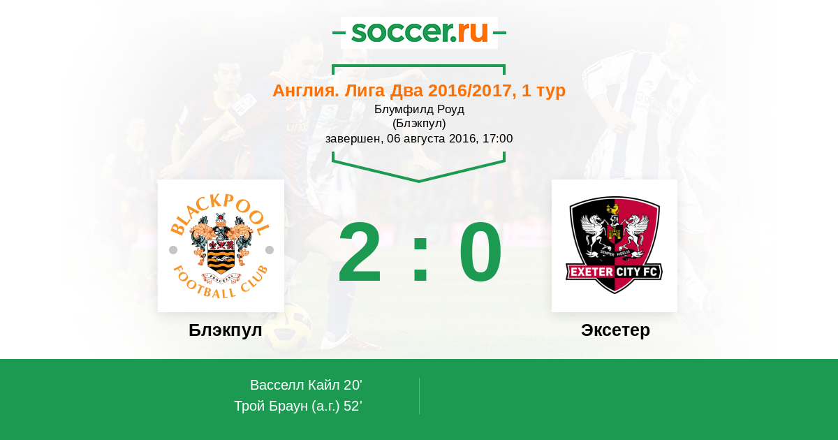 Блэкпул - Эксетер: обзор матча 6 августа 2016