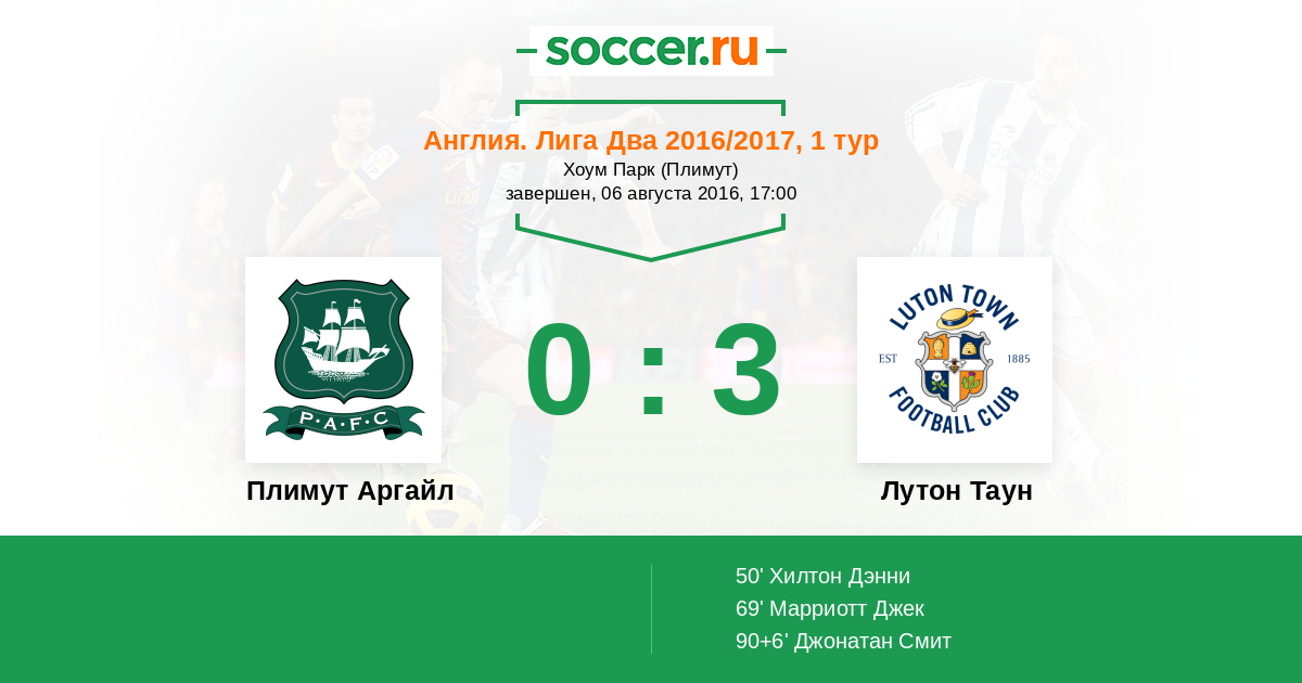 Плимут Аргайл - Лутон Таун: обзор матча 6 августа 2016