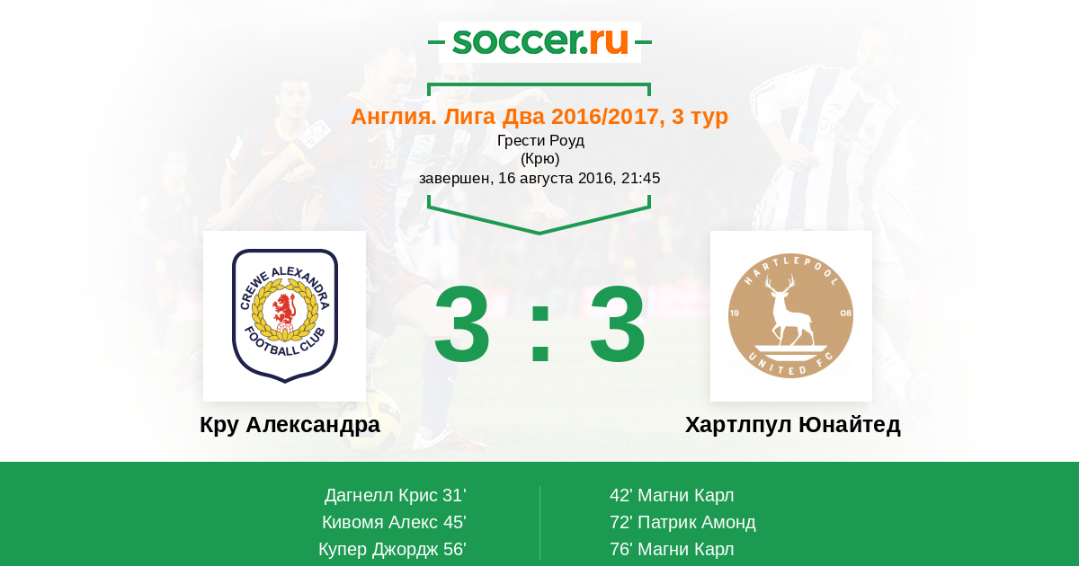 Кру Александра - Хартлпул Юнайтед: обзор матча 16 августа 2016