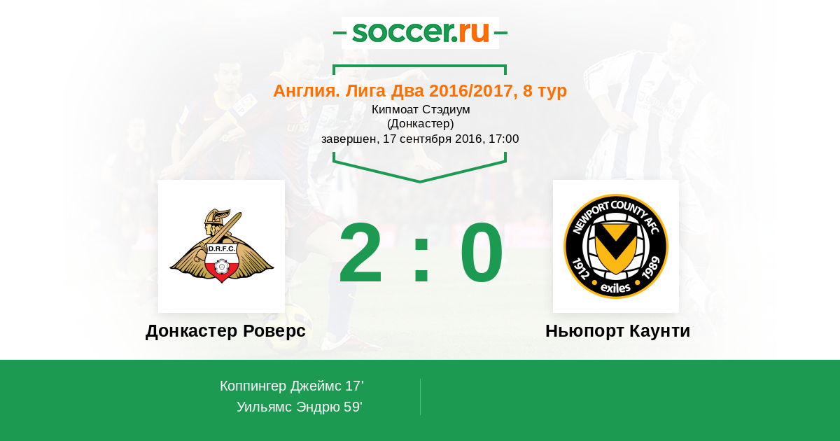 Донкастер Роверс - Ньюпорт Каунти: обзор матча 17 сентября 2016