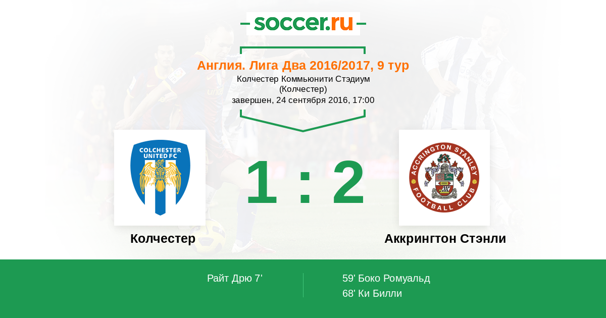 Колчестер - Аккрингтон Стэнли: обзор матча 24 сентября 2016