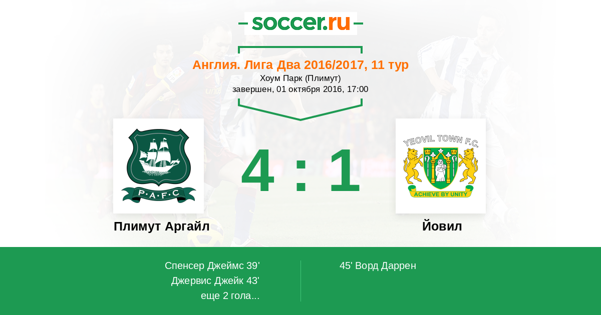 Плимут Аргайл - Йовил: обзор матча 1 октября 2016