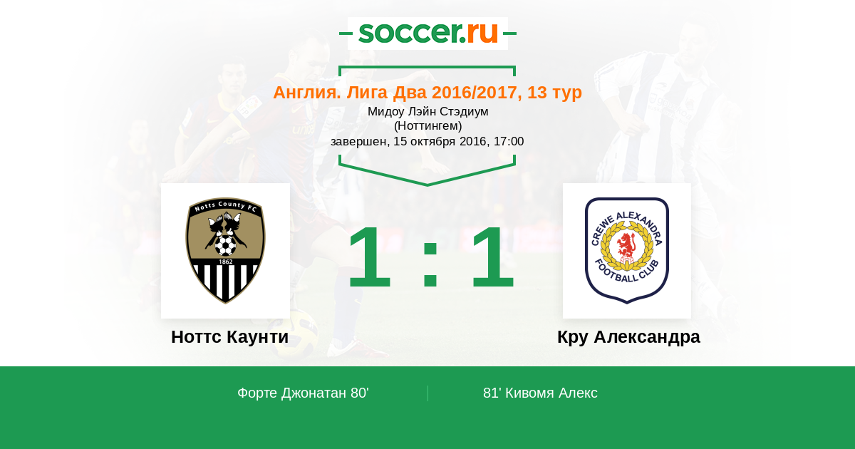 Ноттс Каунти - Кру Александра: обзор матча 15 октября 2016