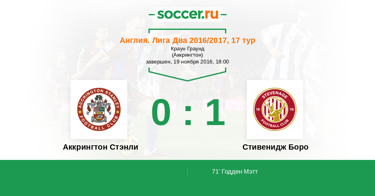 Аккрингтон Стэнли - Стивенидж Боро: обзор матча 19 ноября 2016