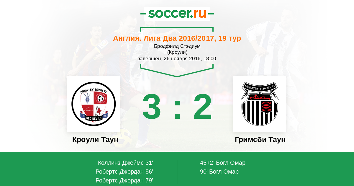 Кроули Таун - Гримсби Таун: обзор матча 26 ноября 2016