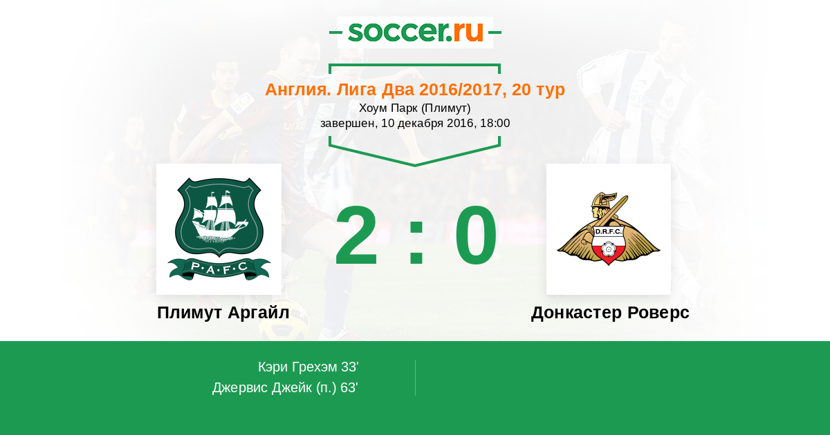 Плимут Аргайл - Донкастер Роверс: обзор матча 10 декабря 2016