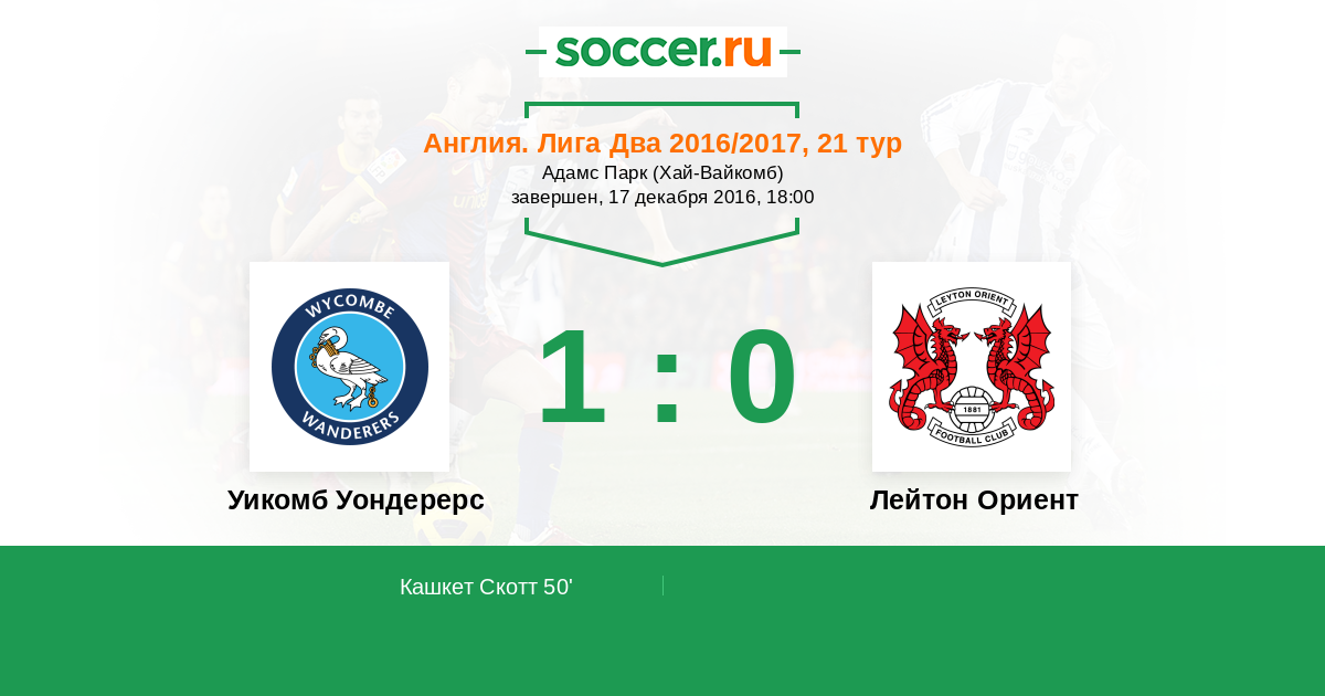 Уикомб Уондерерс - Лейтон Ориент: обзор матча 17 декабря 2016