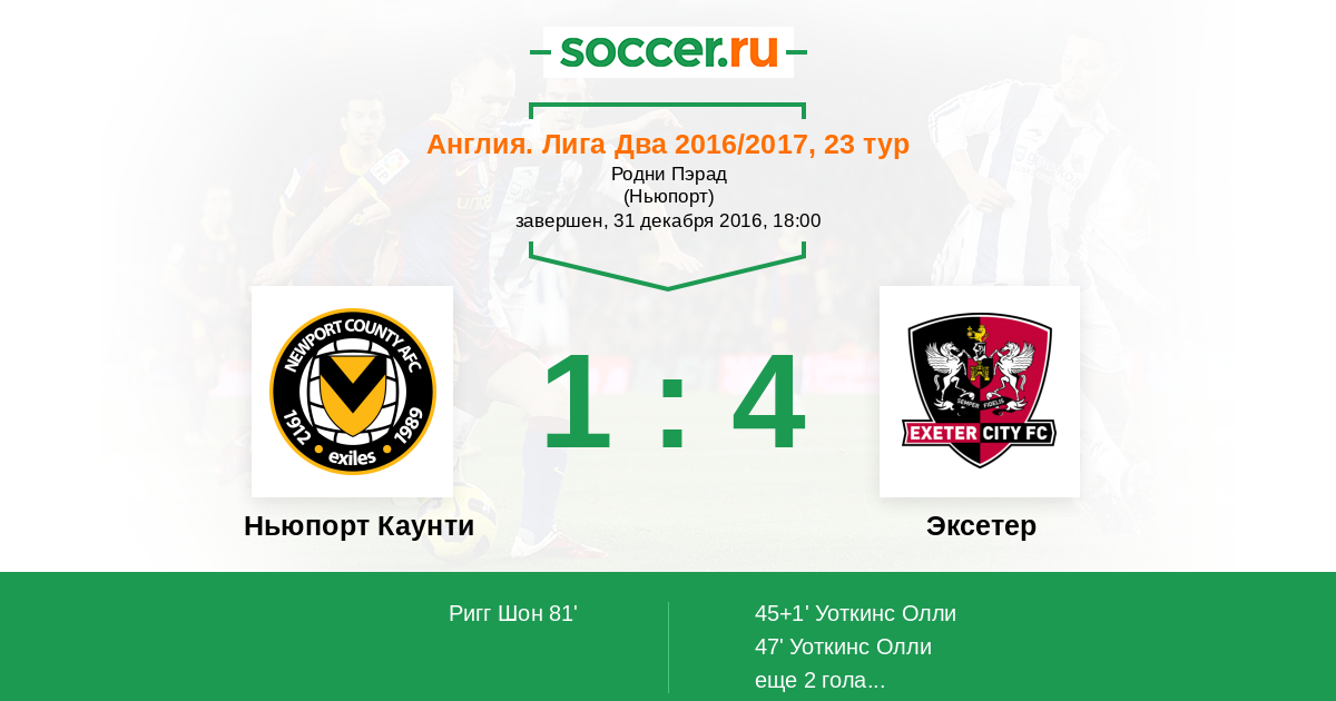 Ньюпорт Каунти - Эксетер: обзор матча 31 декабря 2016