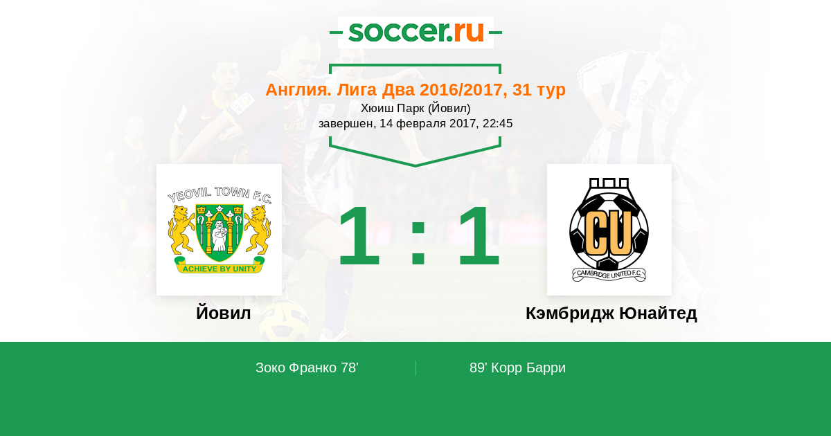 Йовил - Кэмбридж Юнайтед: обзор матча 14 февраля 2017