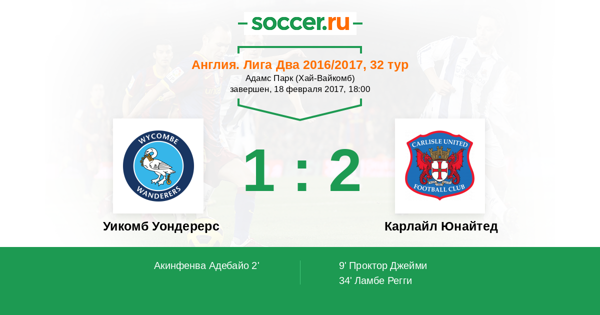 Уикомб Уондерерс - Карлайл Юнайтед: обзор матча 18 февраля 2017
