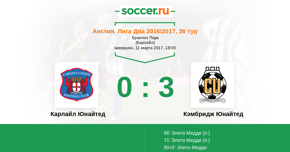 Карлайл Юнайтед - Кэмбридж Юнайтед: обзор матча 11 марта 2017