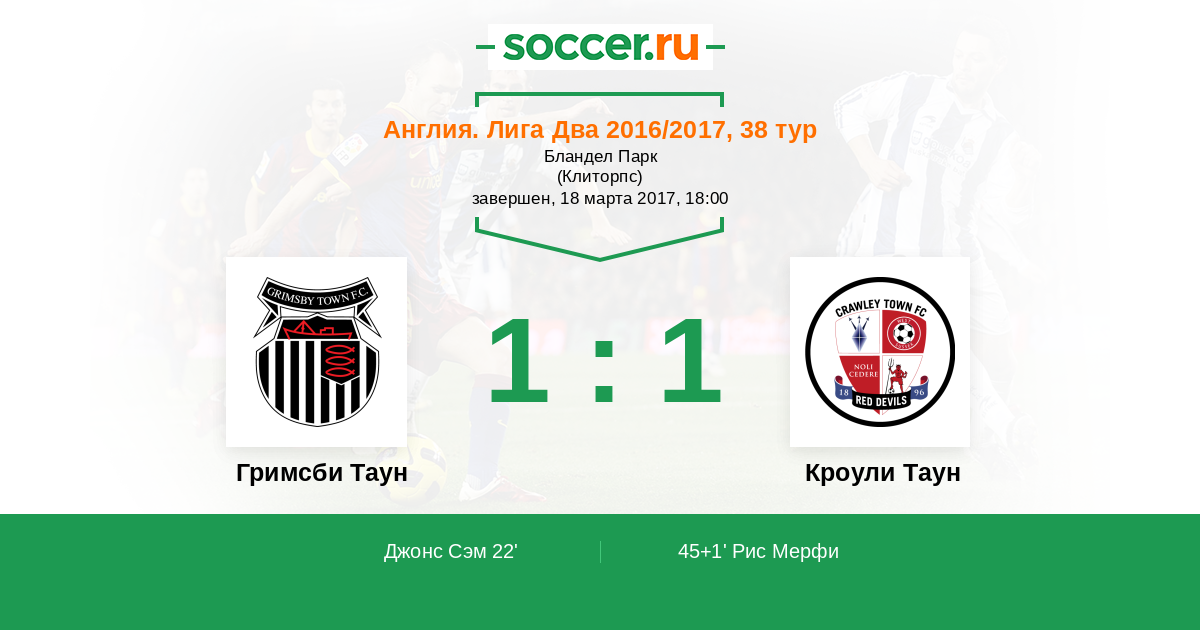 Гримсби Таун - Кроули Таун: обзор матча 18 марта 2017