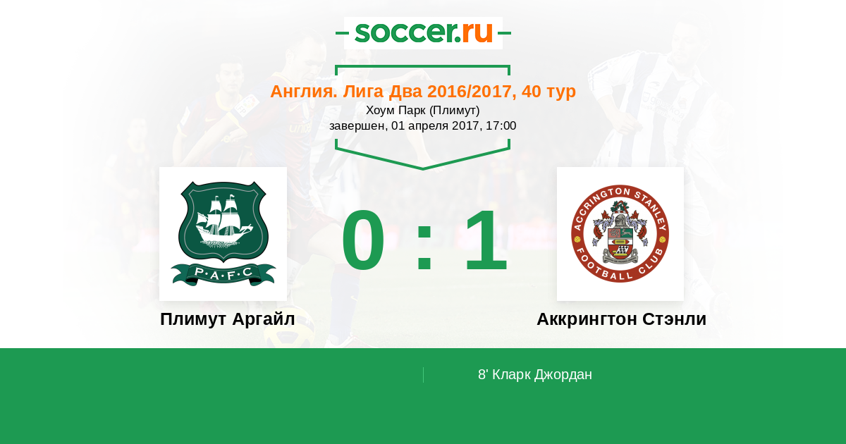 Плимут Аргайл - Аккрингтон Стэнли: обзор матча 1 апреля 2017