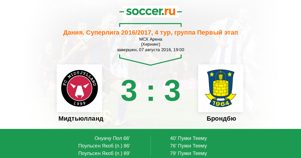 Мидтьюлланд - Брондбю: обзор матча 7 августа 2016