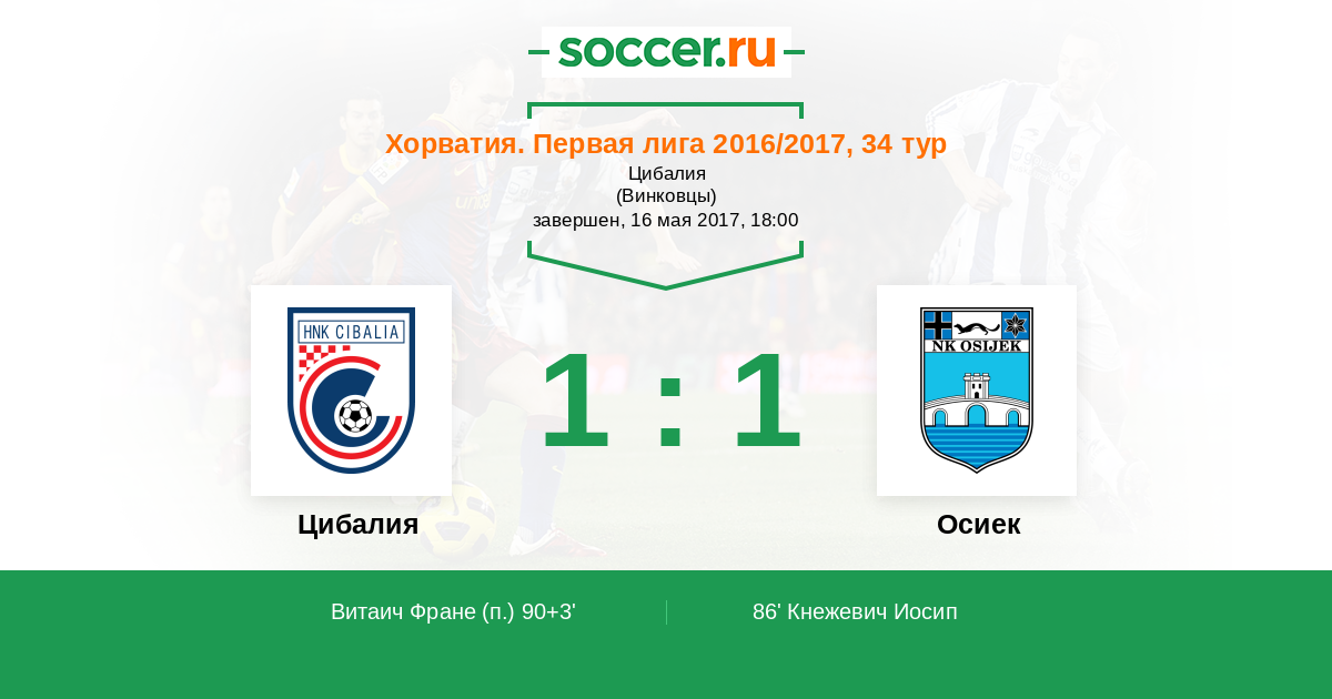 Цибалия - Осиек: обзор матча 16 мая 2017