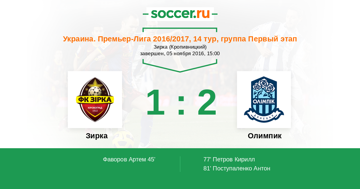 Зирка - Олимпик: обзор матча 5 ноября 2016