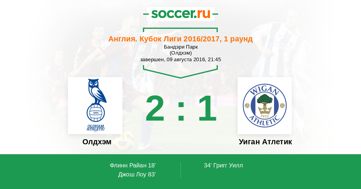 Олдхэм - Уиган Атлетик: обзор матча 9 августа 2016