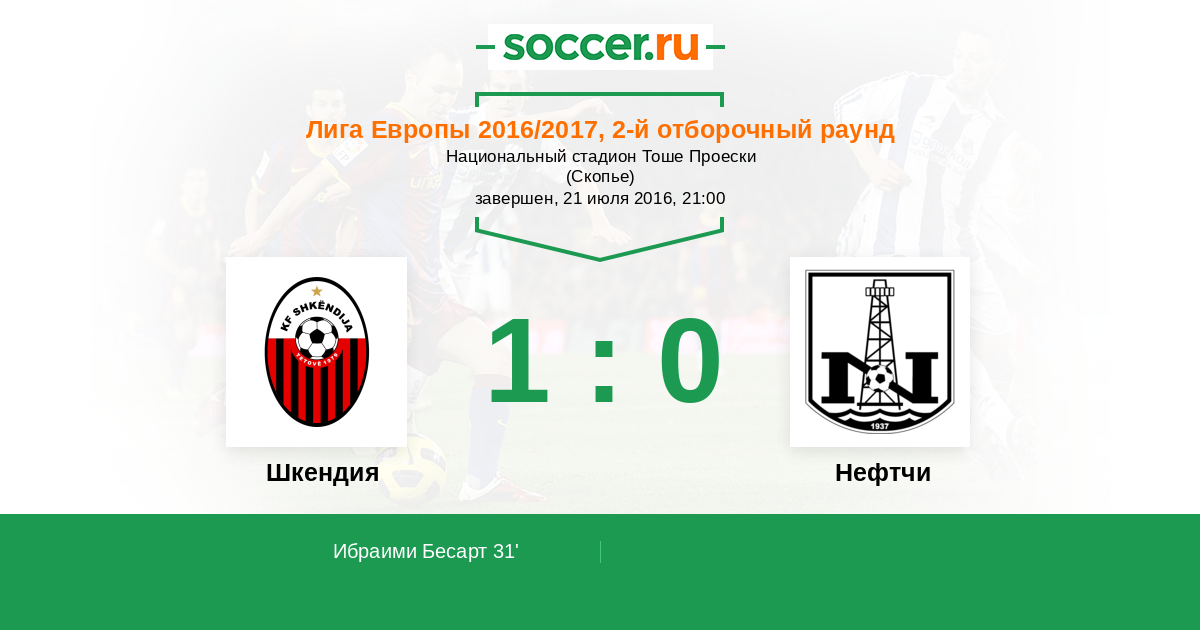 Шкендия - Нефтчи: обзор матча 21 июля 2016