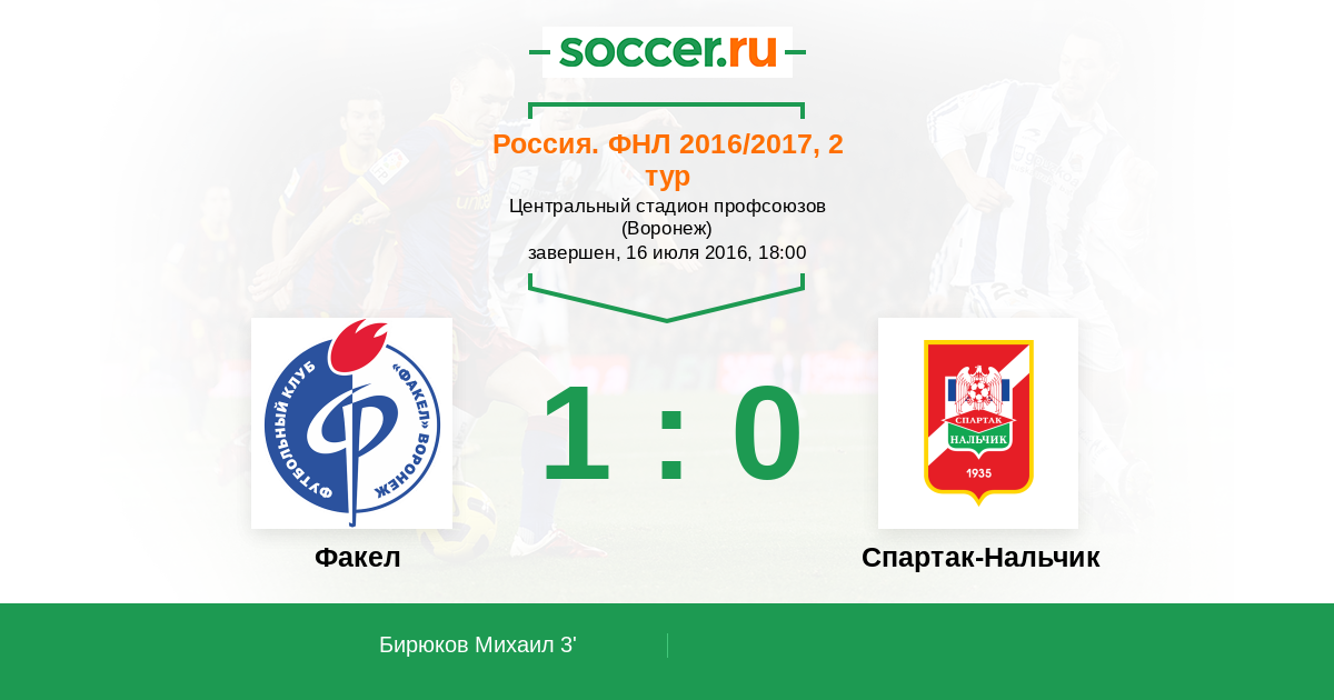 Факел - Спартак-Нальчик: обзор матча 16 июля 2016