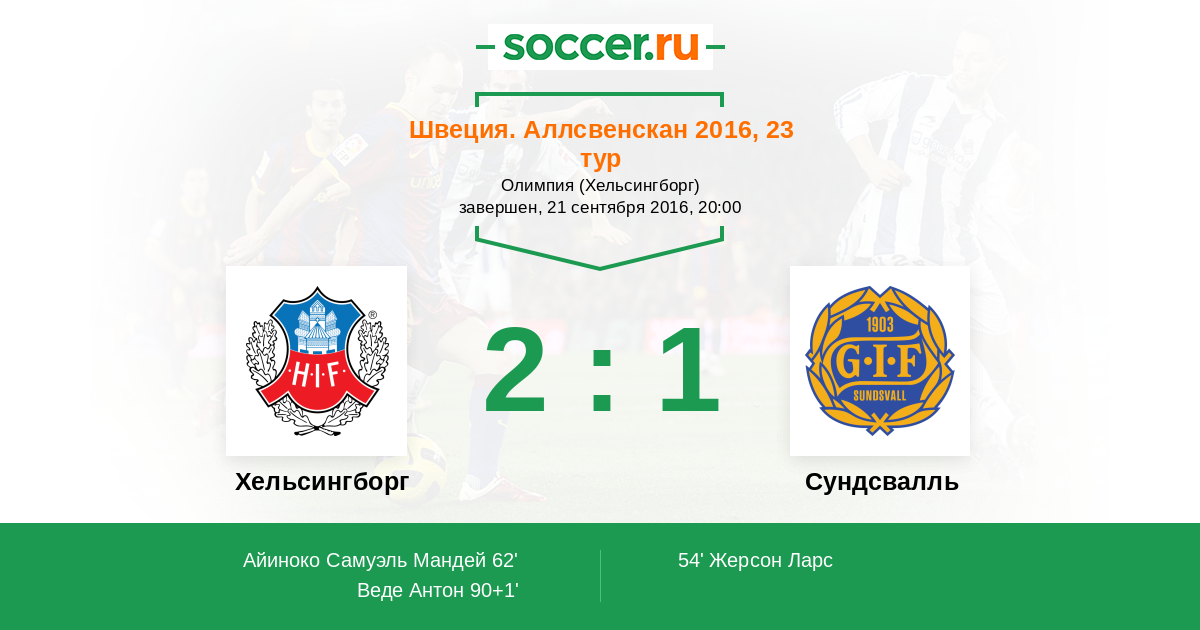 Хельсингборг - Сундсвалль: обзор матча 21 сентября 2016