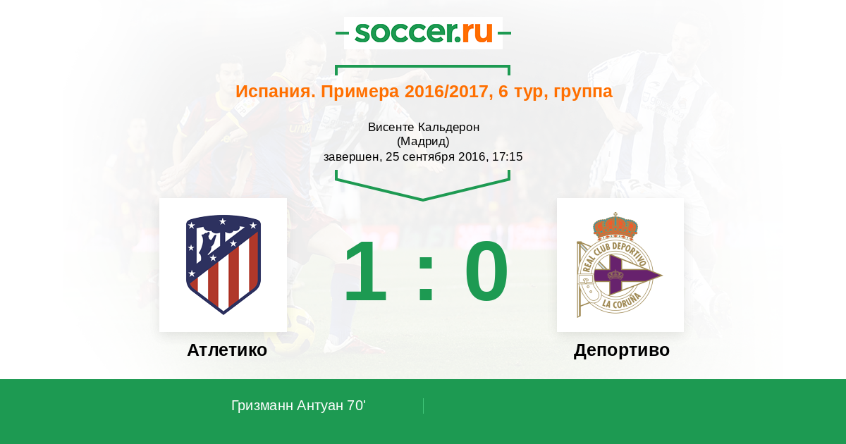 Атлетико - Депортиво: обзор матча 25 сентября 2016