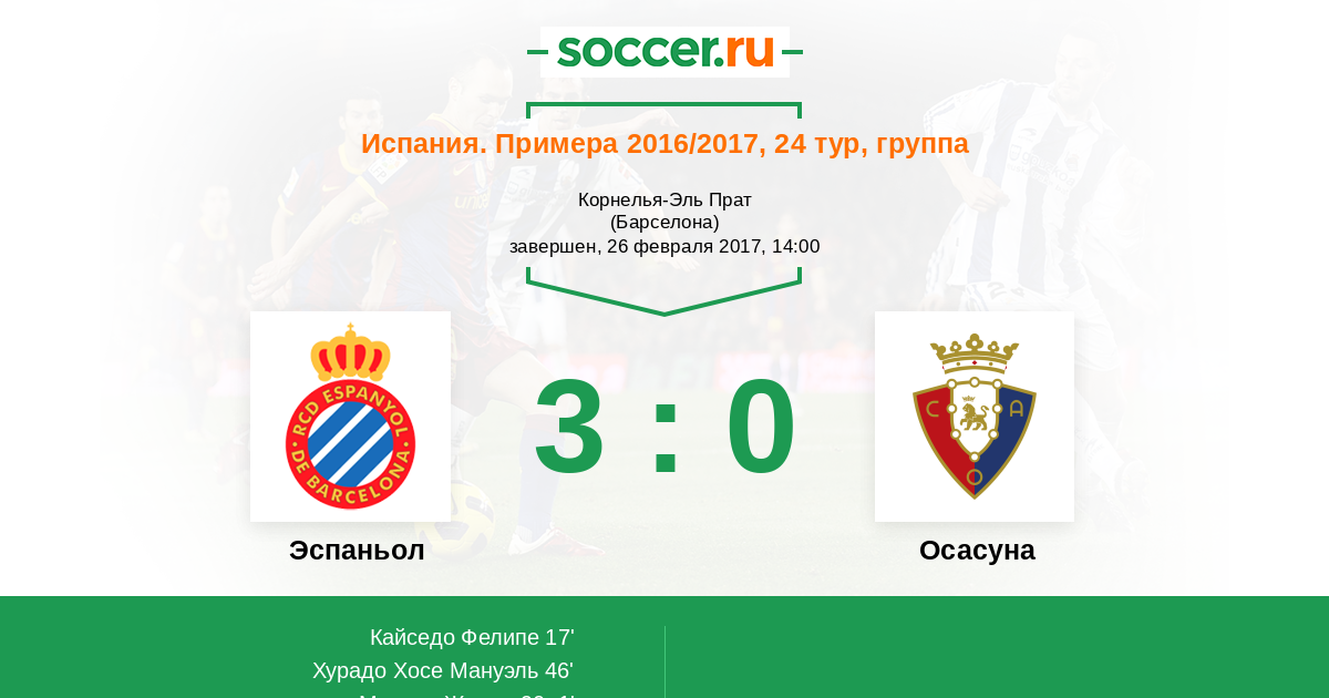 Эспаньол - Осасуна: обзор матча 26 февраля 2017