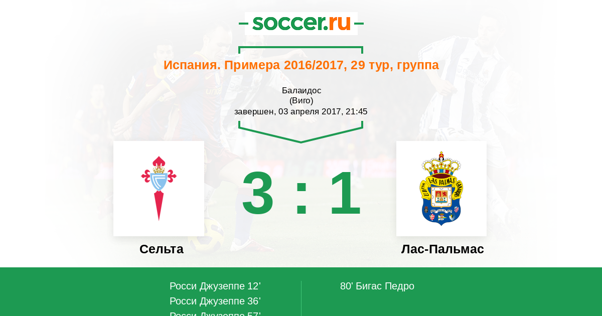 Сельта - Лас-Пальмас: обзор матча 3 апреля 2017