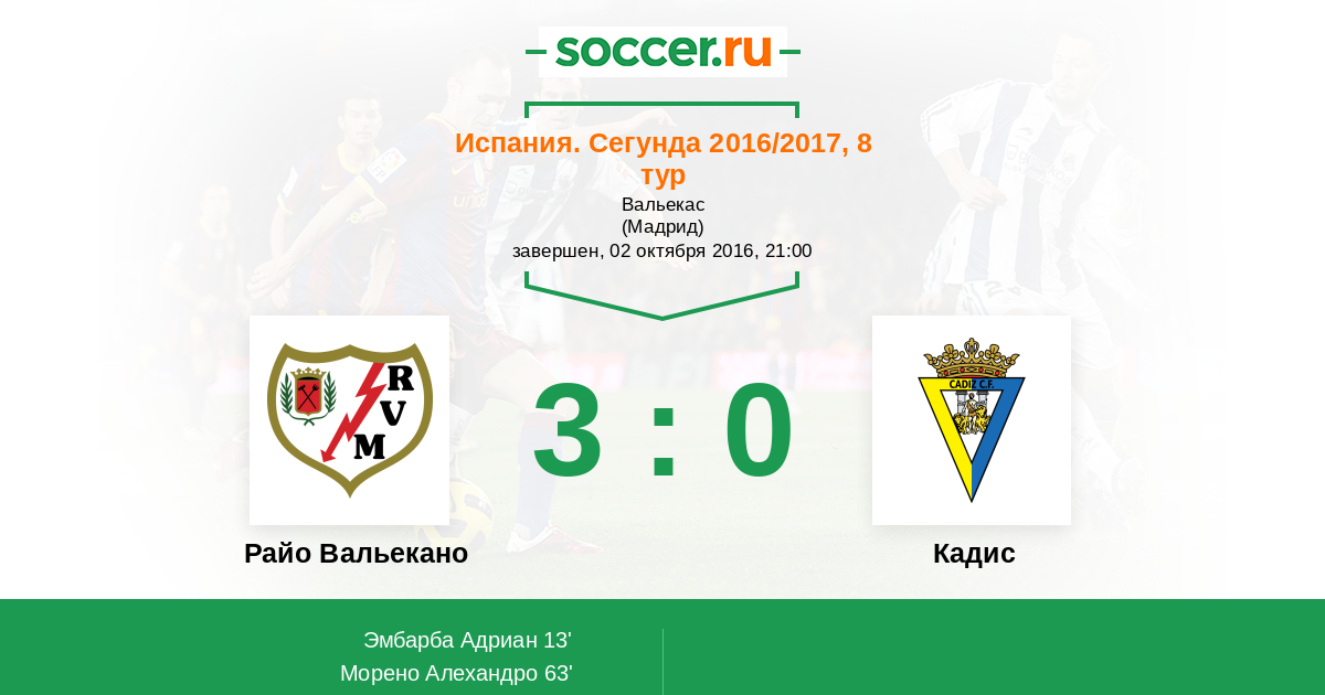 Райо Вальекано - Кадис: обзор матча 2 октября 2016
