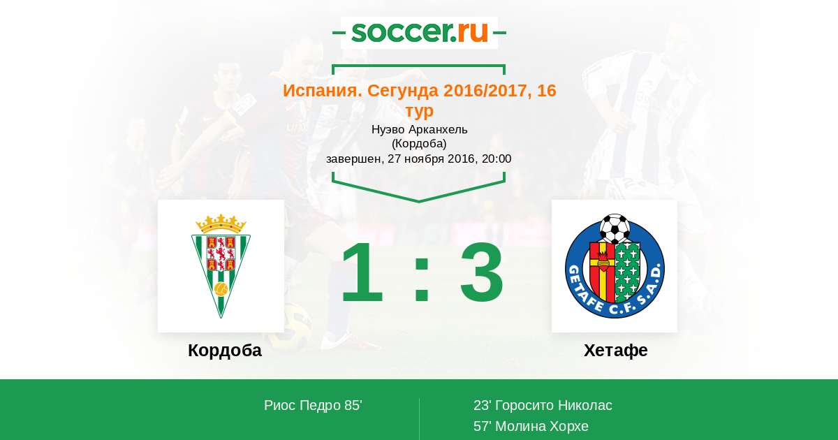 Кордоба - Хетафе: обзор матча 27 ноября 2016