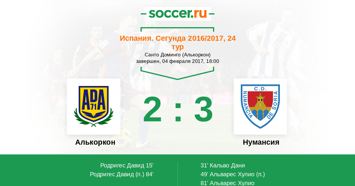 Алькоркон - Нумансия: обзор матча 4 февраля 2017